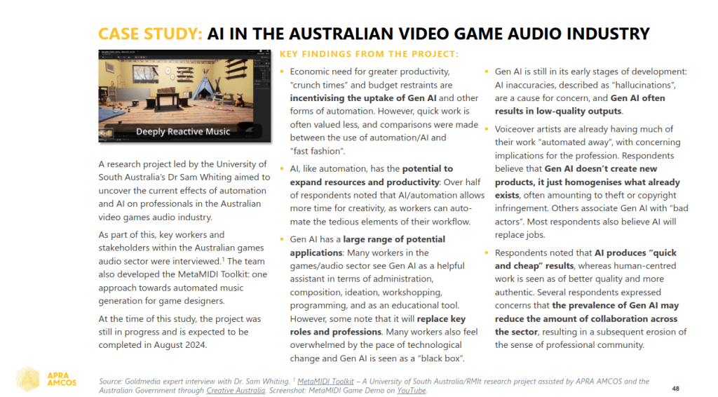 Between July 2023 and January 2024, our team interviewed a range of Australian Video Game Audio professionals to get a “pulse-check” on how both Artificial Intelligence (AI) and non-AI Automation are affecting their practice.